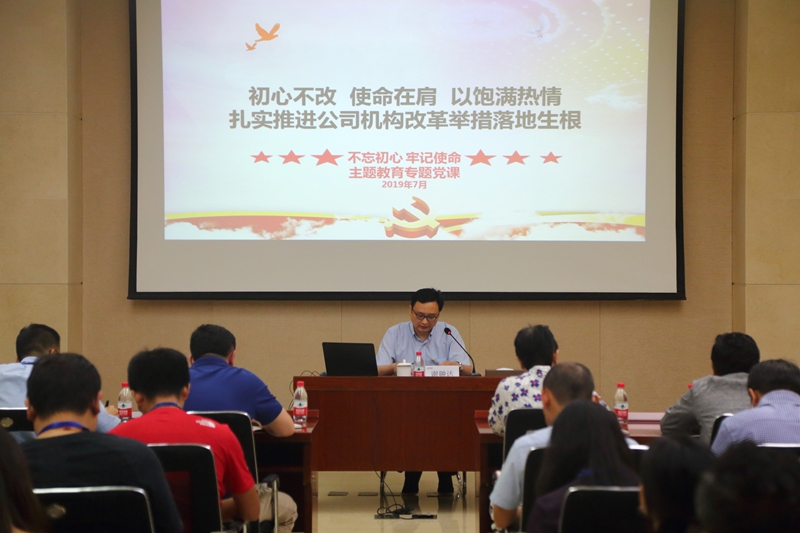 为贯彻落实党中央和银保监会党委关于主题教育的各项部署,按照中国保信党委“不忘初心、牢记使命”主题教育要求及工作安排,2019年7月19日,公司党委书记谢翀达以“初心不改、使命在肩,以饱满热情扎实推进公司机构改革举措落地生根”为主题,讲了一堂专题党课。公司各党支部党员参加了学习。